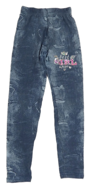 Šedomodré legíny riflového vzhledu a nápisem z flitrů