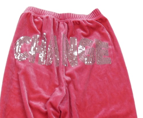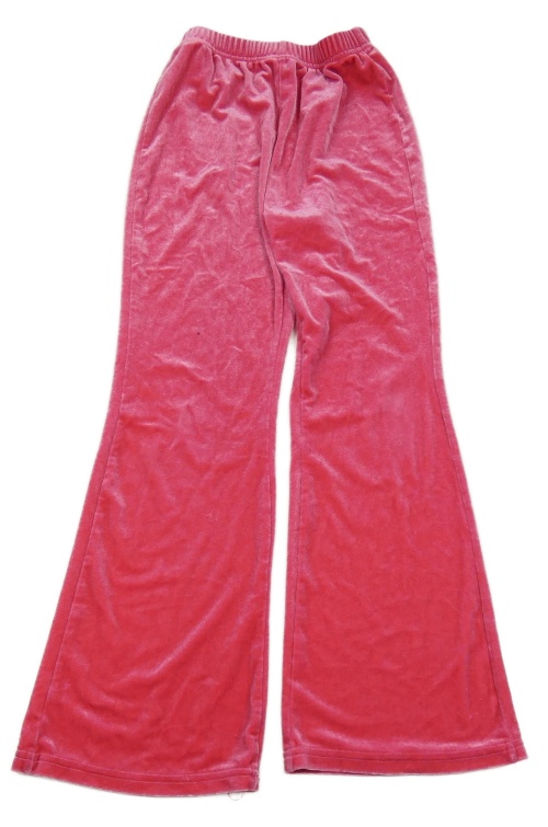 Ružové zamatové flare nohavice s nápisom
