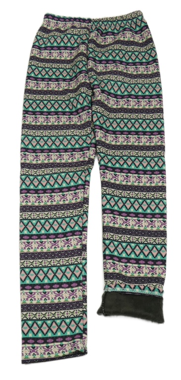 Zeleno-smetanovo-fialové vzorované zateplené legíny