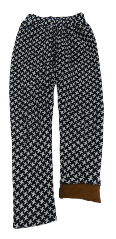 Tmavomodro-svetlosivé vzorované plyšové zateplené legíny