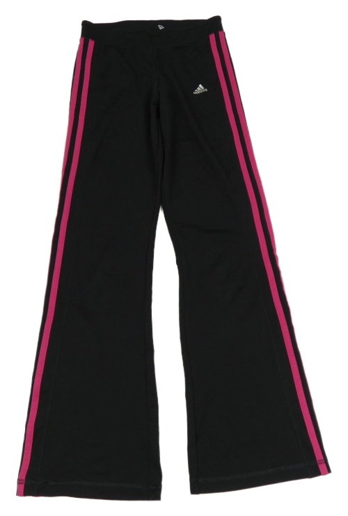 Čierne športové flare tepláky s ružovymi pruhmi Adidas