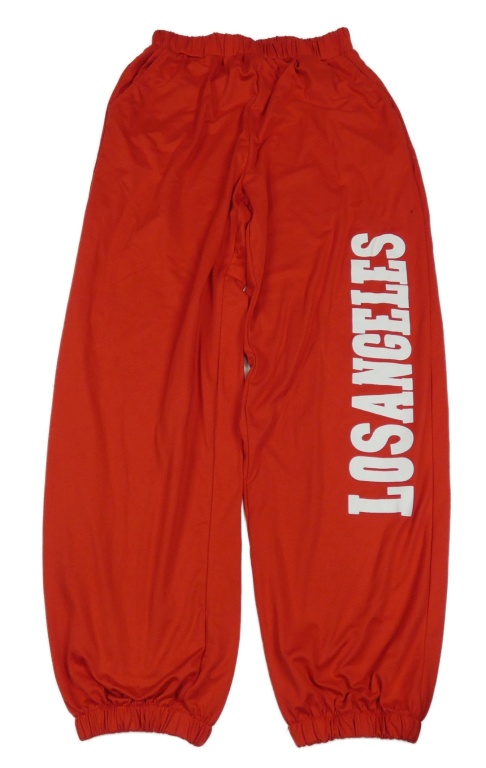 Červené tepláky s nápisom