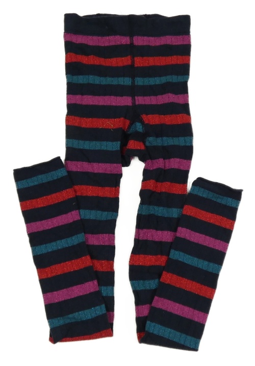 Tmavomodro-ružovo-petrolejovo-červené pruhované trblietavé punčocháčové legíny Tchibo