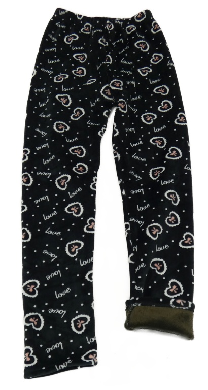 Čierne bodkovaná é plyšové zateplené legíny so srdiečkami s mašličkami