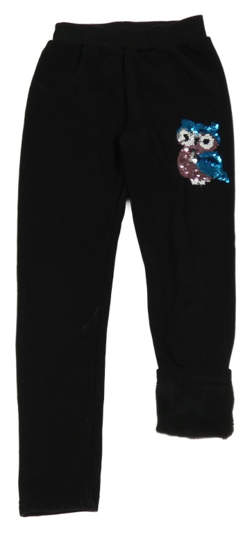 Čierne zateplené legíny so sovou z překlápěcích flitrů
