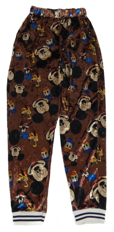 Čokoládové plyšové nohavice s Mickey s kamarády a pruhmi