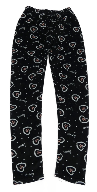 Čierne zamatové zateplené legíny so srdiečkami