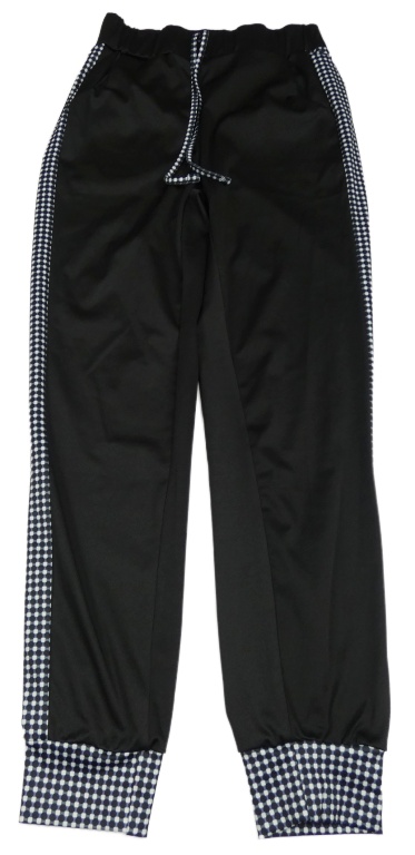 Čierno-biele športové tepláky so vzorovaným pruhom