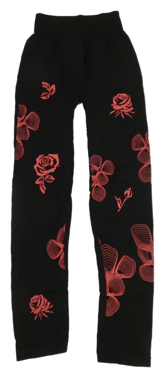 Čierne športové legíny s ružovými kvetinami