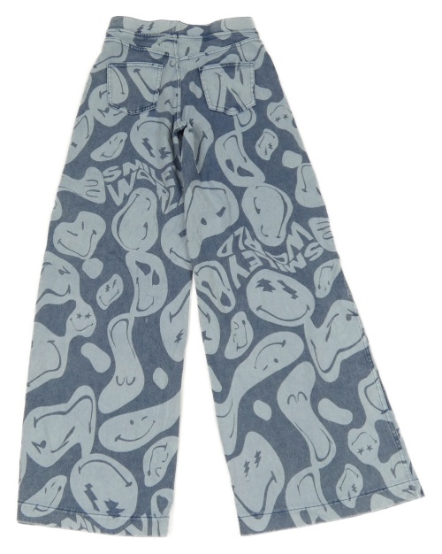 Tmavomodro-svetlomodré wide leg tregíny so smajlíkmi H&M