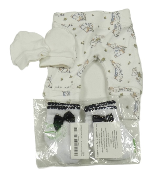 Nové - 4Set - Biele tepláky s králíčky - Peter Rabbit George + rukavice + 2x - ponožky s mašlí
