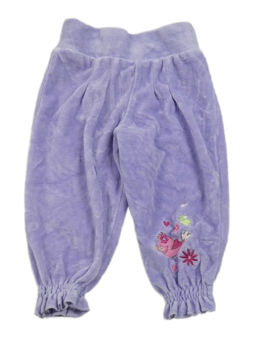 Fialové zamatové tepláky s kvietkami Pusblu