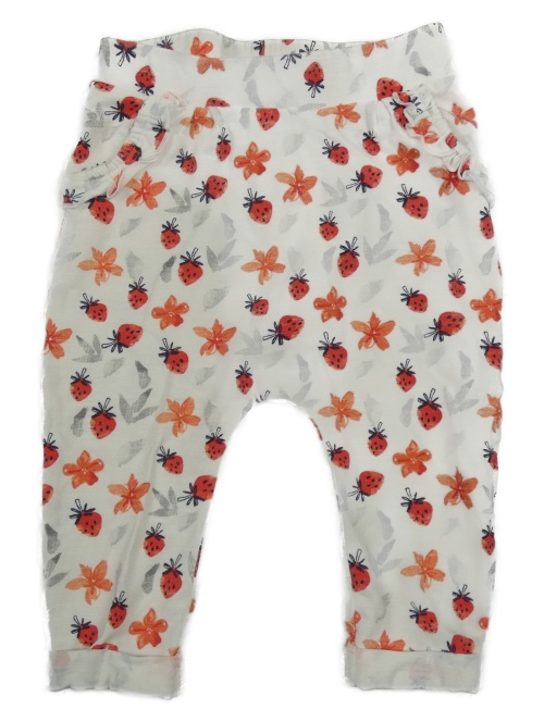 Biele ľahké baggy tepláky s kvietkami a jahůdkami Topomini