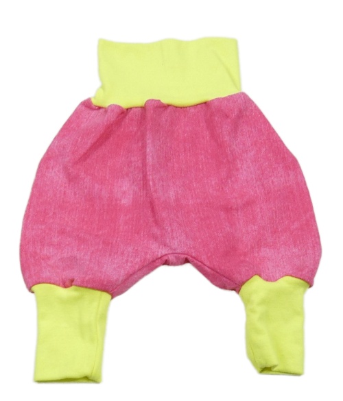 Fuchsiovo-neónově žlté tepláky