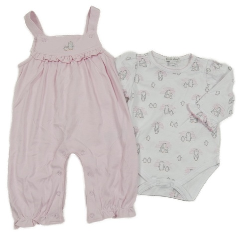 2set - Svetloružové ľahké na traké tepláky s tučňáky + biele body s tučňáky