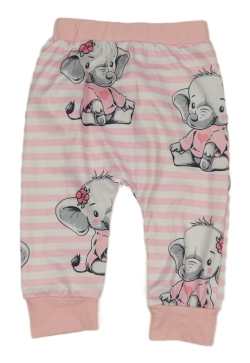 Bielo-ružové pruhované ľahké tepláky so slonmi