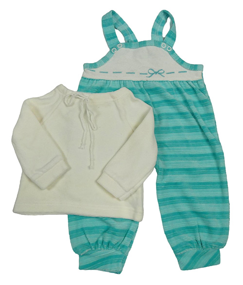 2set - Tyrkysovo-biele rebrované zamatové na traké tepláky s mašlí + smotanové zamatové tričko