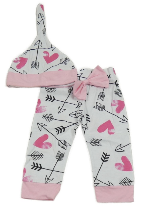 2set - Biele ľahké tepláky so šípmi a srdíčky + bavlnená čapica