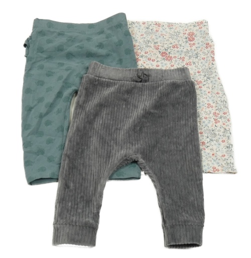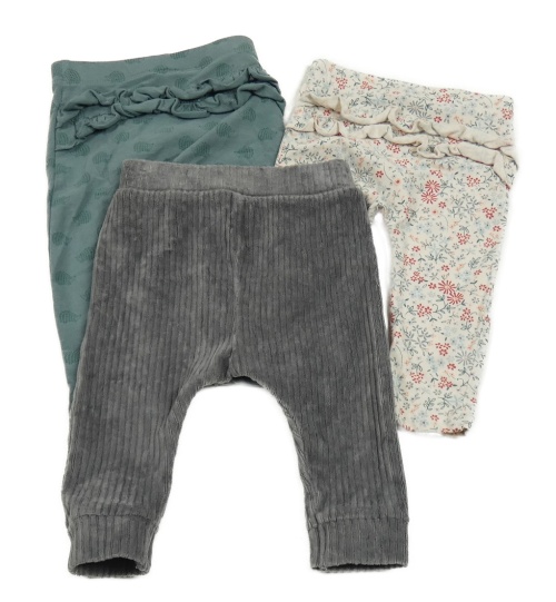 3set - 2x legíny s volánky - zelené + biele kvetované + 1x sivé rebrované zamatové tepláky