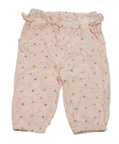 Ružovo-biele pruhované tepláky s obrázkami a volánikom Topomini