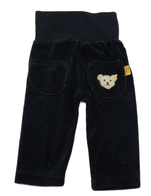 Tmavomodré zamatové tepláky s medvedíkom Steiff