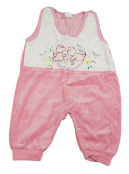 Bielo-ružové zamatové na traké tepláky s vtáčky