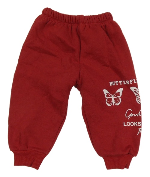 Červené teplákové tepláky s motýlikmi a nápismi