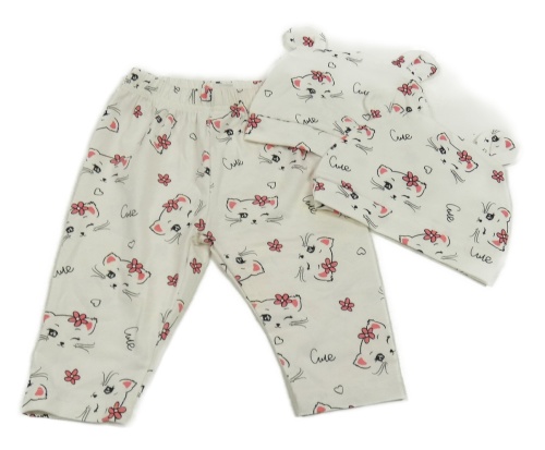 3set - Biele ľahké tepláky s kočkami + 2x čapica