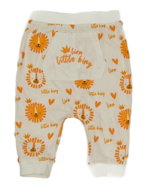 Biele turecké tepláky so lvíčky a srdiečkami a vreckom s nápismi