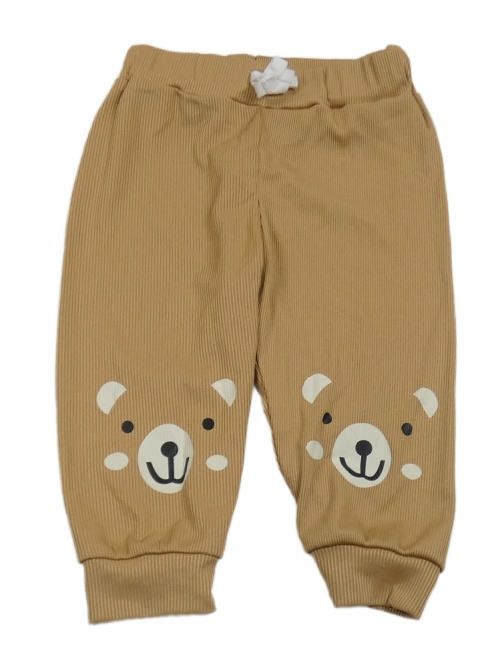 Hnedé rebrované tepláky s medvedíkmi a mašlou