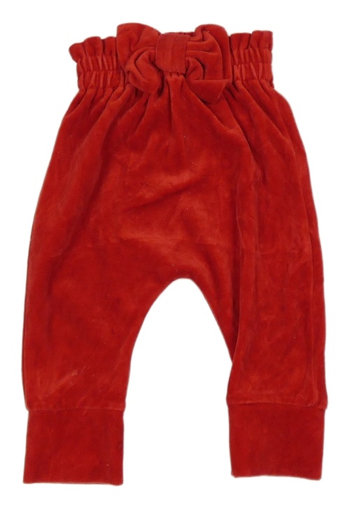Červené zamatové tepláky s mašlou