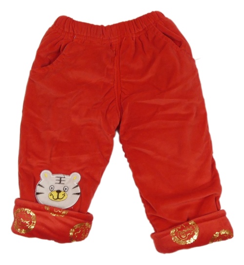Červené plyšové zateplené teplákové nohavice s tigrom
