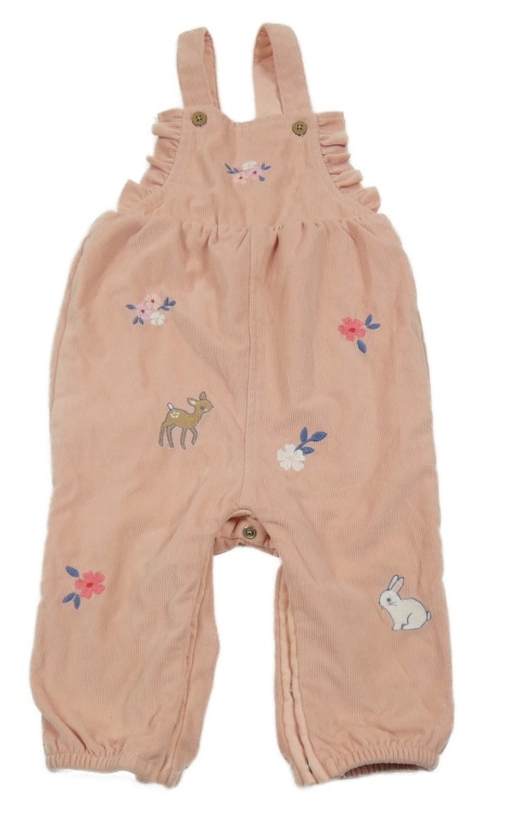 Svetloružové na traké podšité zamatové nohavice s kvietkami a zvieratkami Little nutmeg