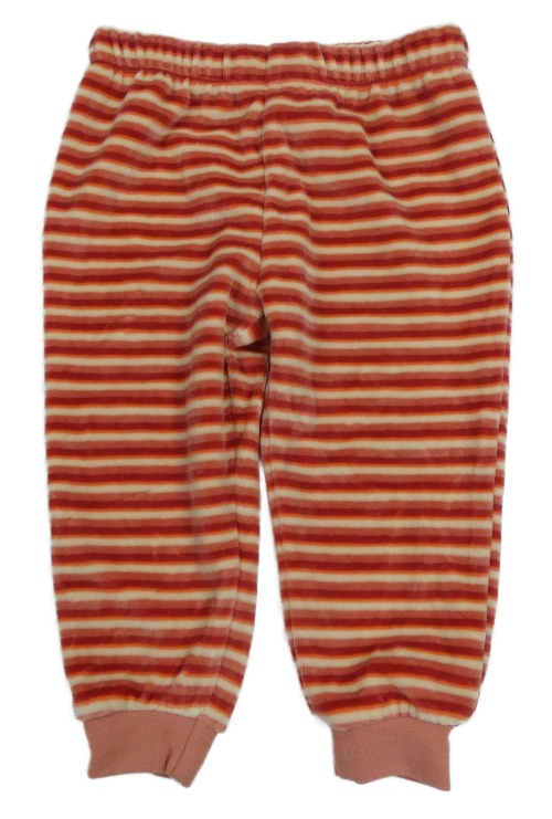 Starorůžovo-červeno-krémové pruhované zamatové tepláky Topomini