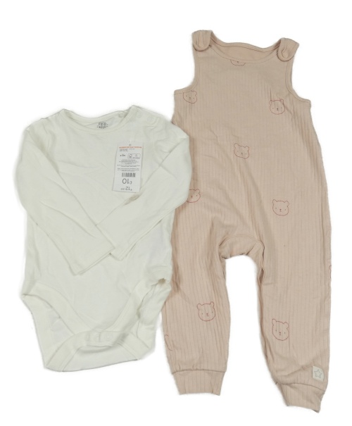 Nové - 2Set - Pudrové rebrované na traké tepláky s medvídky + biele body F&F