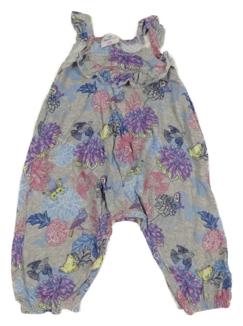 Sivé na traké tepláky s kvetmi a vtáčky Topomini