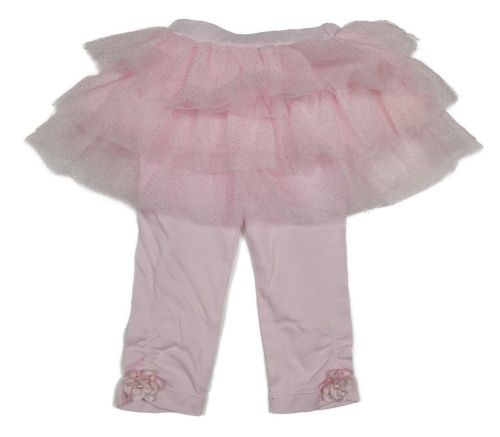 Svetloružové legíny s tylovou třpytivou sukní a 3D kvety