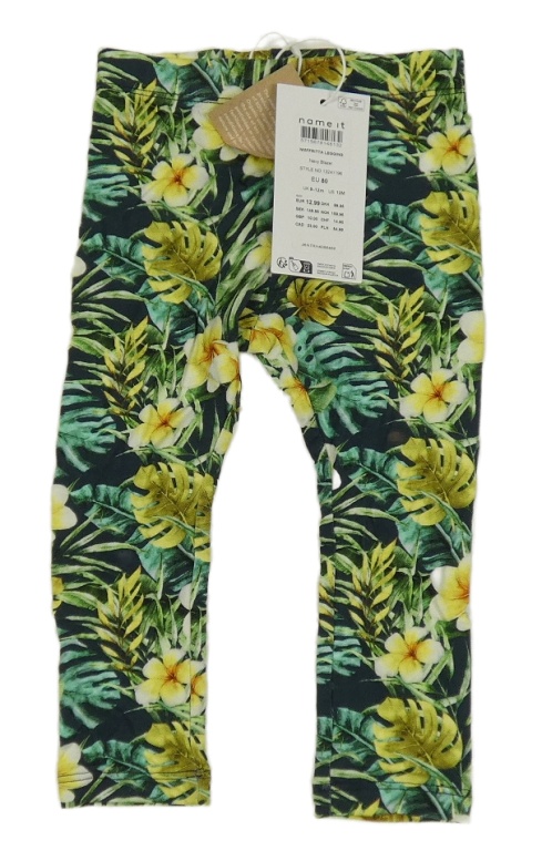 Nové - tmavomodré turecké legíny s kvetmi a lístečky name it.