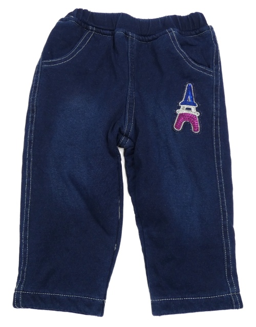 Tmavomodré teplákové nohavice s obrázkem z flitrů