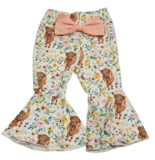 Biele hippie nohavice s kvietkami a bizony a mašlou