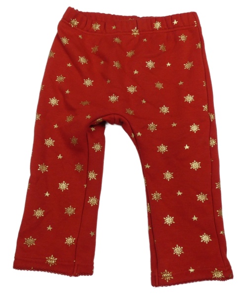 Červené teplákové zateplené legíny so zlatými vločkami a hviezdičkami