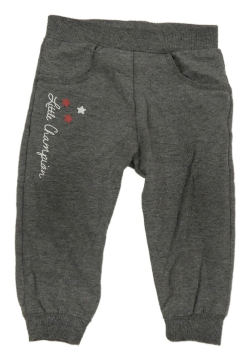 Tmavosivé melírované tepláky s nápisom a hviezdičkami