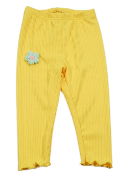 Horčicové rebrované legíny s kvetinou