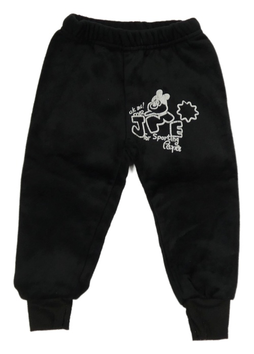Čierne zamatové nohavice s medvedíkom a nápisom
