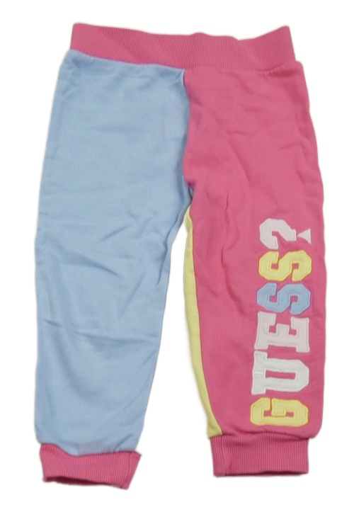 Tmavorůžovo-světlemodro-bielo-žlté tepláky s logom GUESS