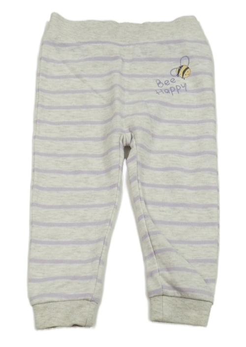 Svetlošedá -fialové pruhované melírované tepláky so včielkou a nápismi impidimpi