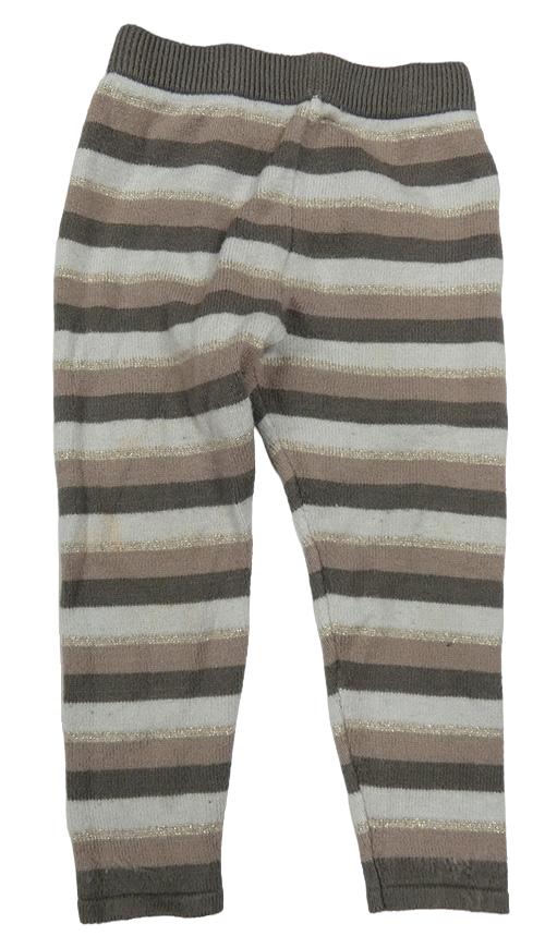 Tmavošedo-sivo-hnedé pruhované trblietavé pletené tepláky Yd.