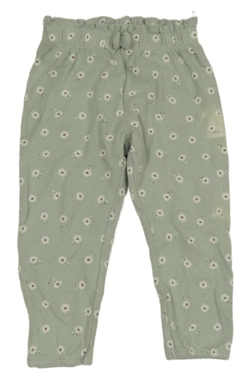 Světleolivové rebrované paper bag tepláky s kvietkami a mašlou C&A