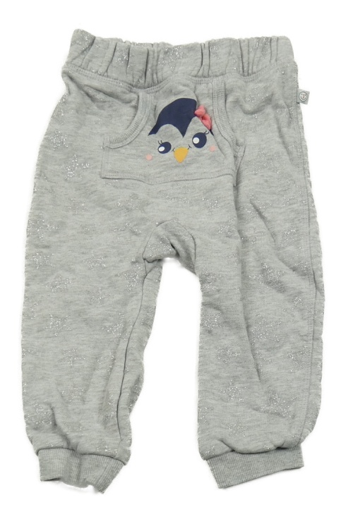 Sivé melírované teplákové tepláky s vreckom s vtáčikom a striebornými hviezdičkami Liegelind