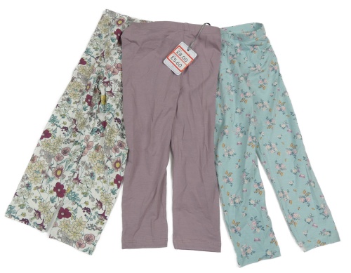Nové - 3x legíny - pudrové fialové + bílo-barevné květované + světlemodré kvetované Tu